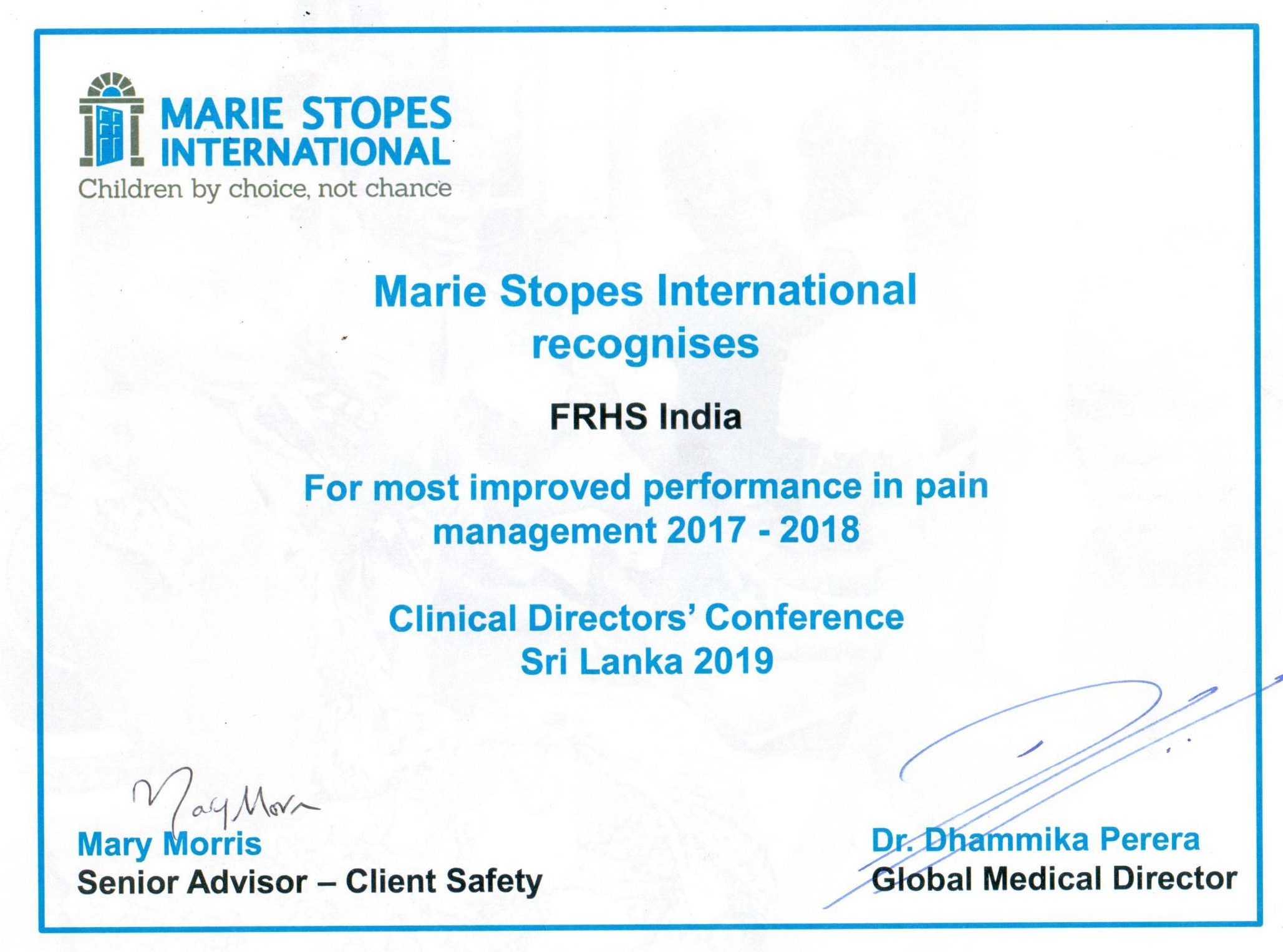 This felicitation is an affirmation and recognition of FRHSI’s commitment to quality of care and reflects a win of one our core values of ‘Client centeredness.’
