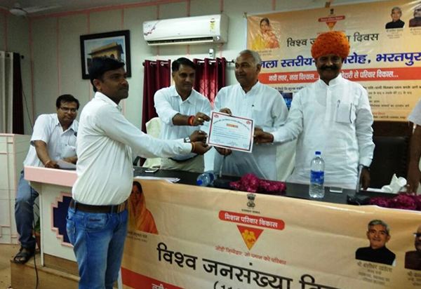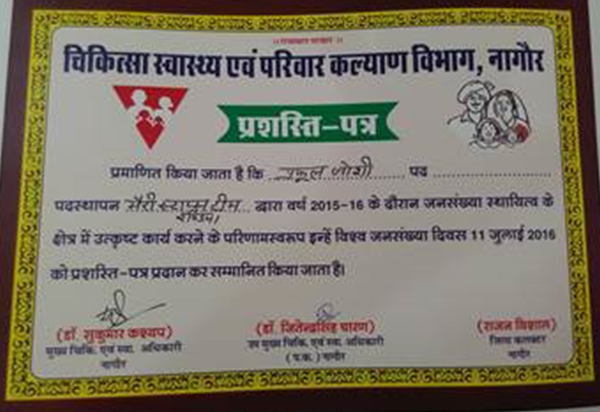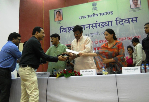 FRHS India has been the recipient of the ‘Best NGO in Family Planning Award’ for seven years in a row beginning 2012. The annual award is presented by the Government of Rajasthan, to recognise the contribution of NGOs in the state. The for 2016-17 was presented by Shri award Kalicharan Sharaff, Minister, Medical, Health & Family Welfare, Rajasthan, on the occasion of the World Population Day on 11th July, 2017 in Jaipur.